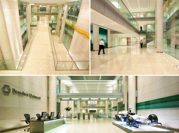 An award winning project, the 30 Gresham Street is a project located in the City in the heart of London, which involved the supply of fine cutting Moleanos and Cabeca Veada limestone for diverse interior applications.