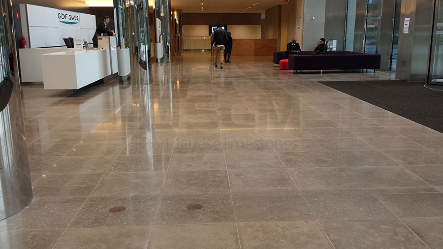 Supply of Moleanos Blue limestone from Portugal for a part of the Pole Star complex of buildings located in Brussels, Belgium. The project involved the supply of tiles for exterior flooring, but also tiles for interior flooring and diverse staircases.